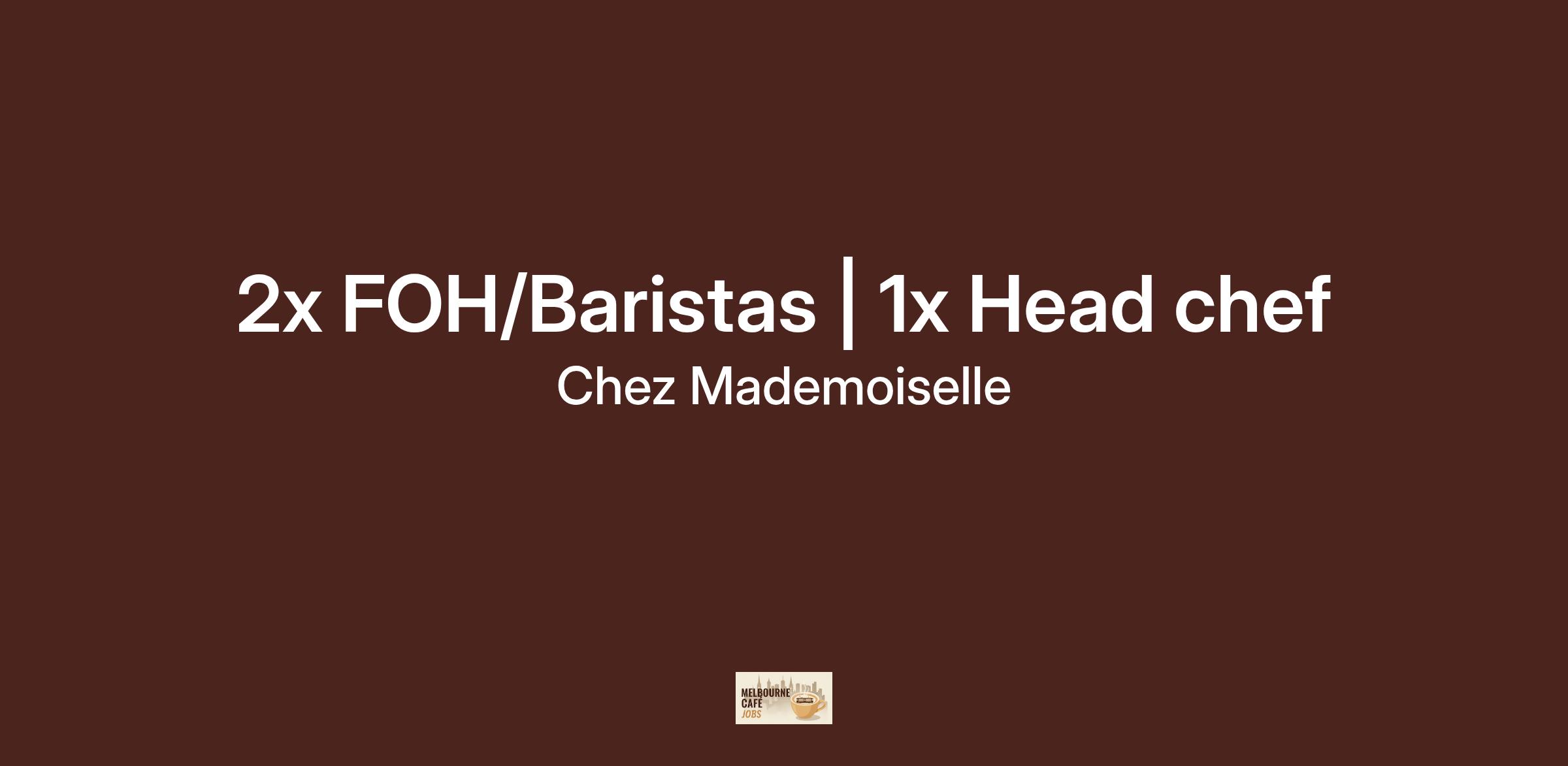 Chez Mademoiselle (coffee shop next to Prahran station) is hiring three new staff members!!!