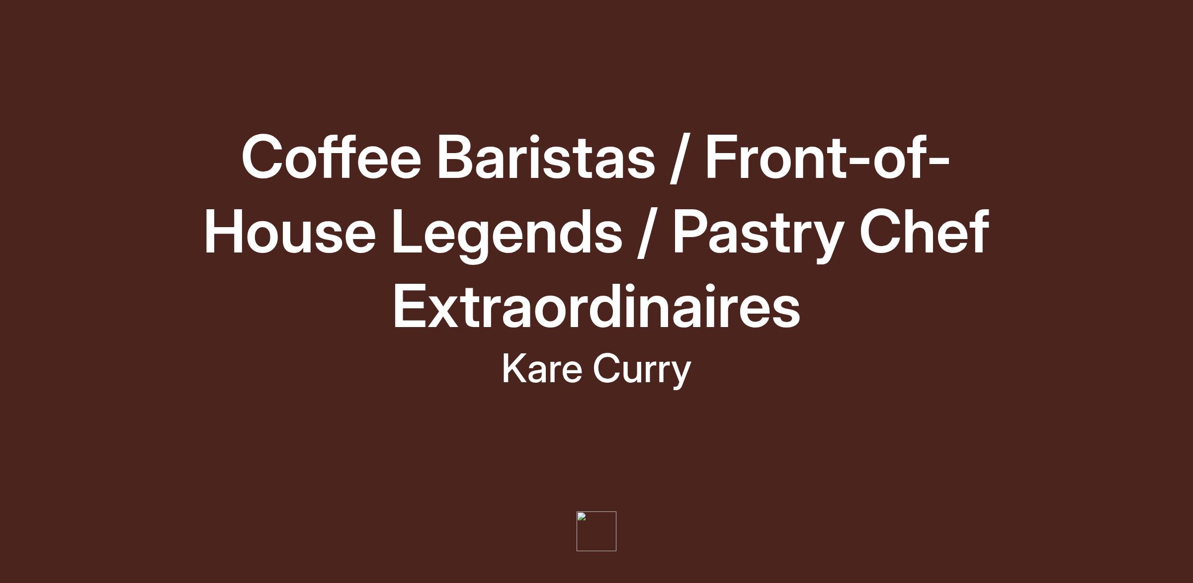 Coffee Baristas / Front-of-House Legends / Pastry Chef Extraordinaires