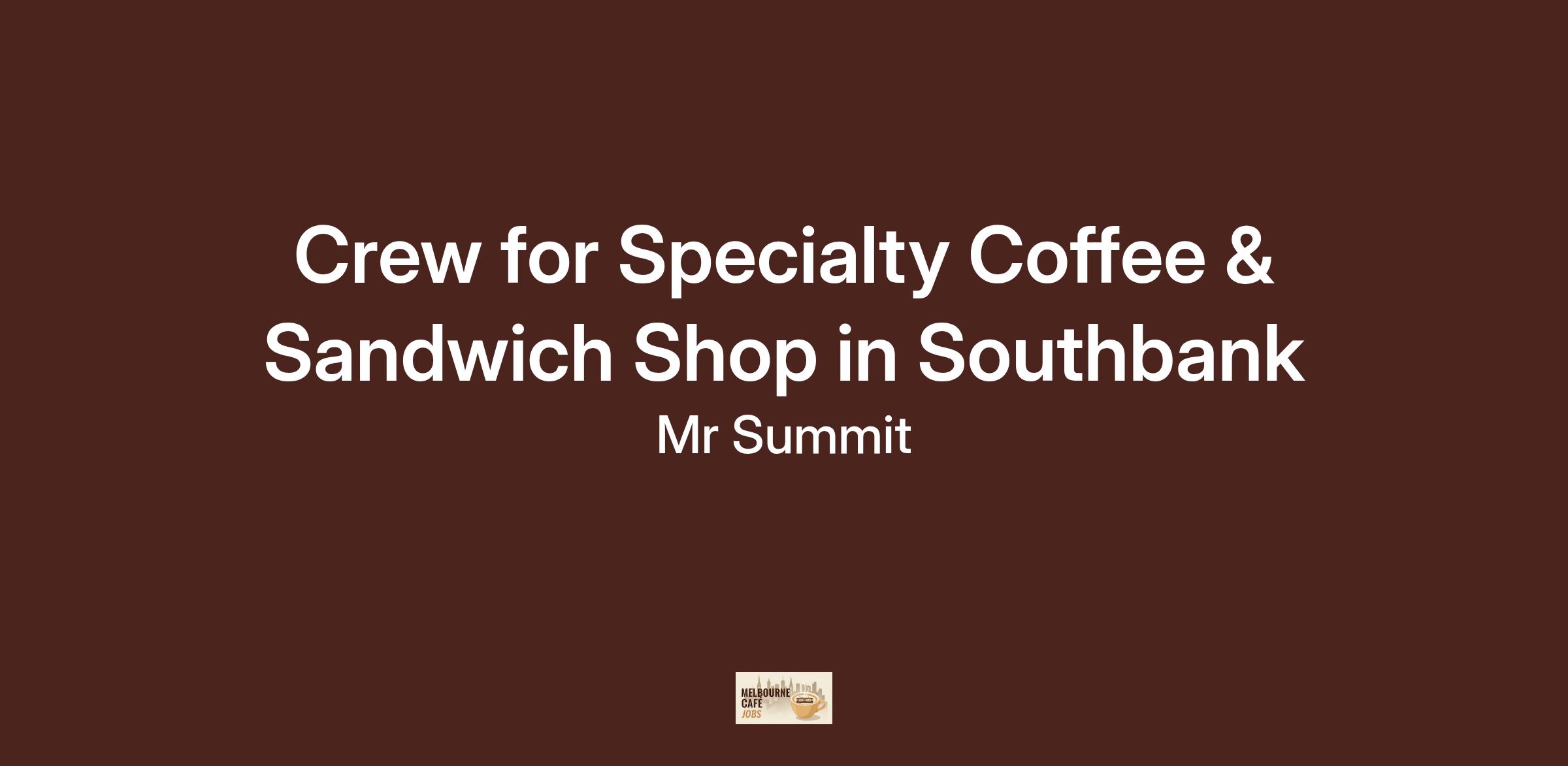 Mr. Summit is on the hunt for enthusiastic people to join our specialty coffee & sandwich shop in Southbank!