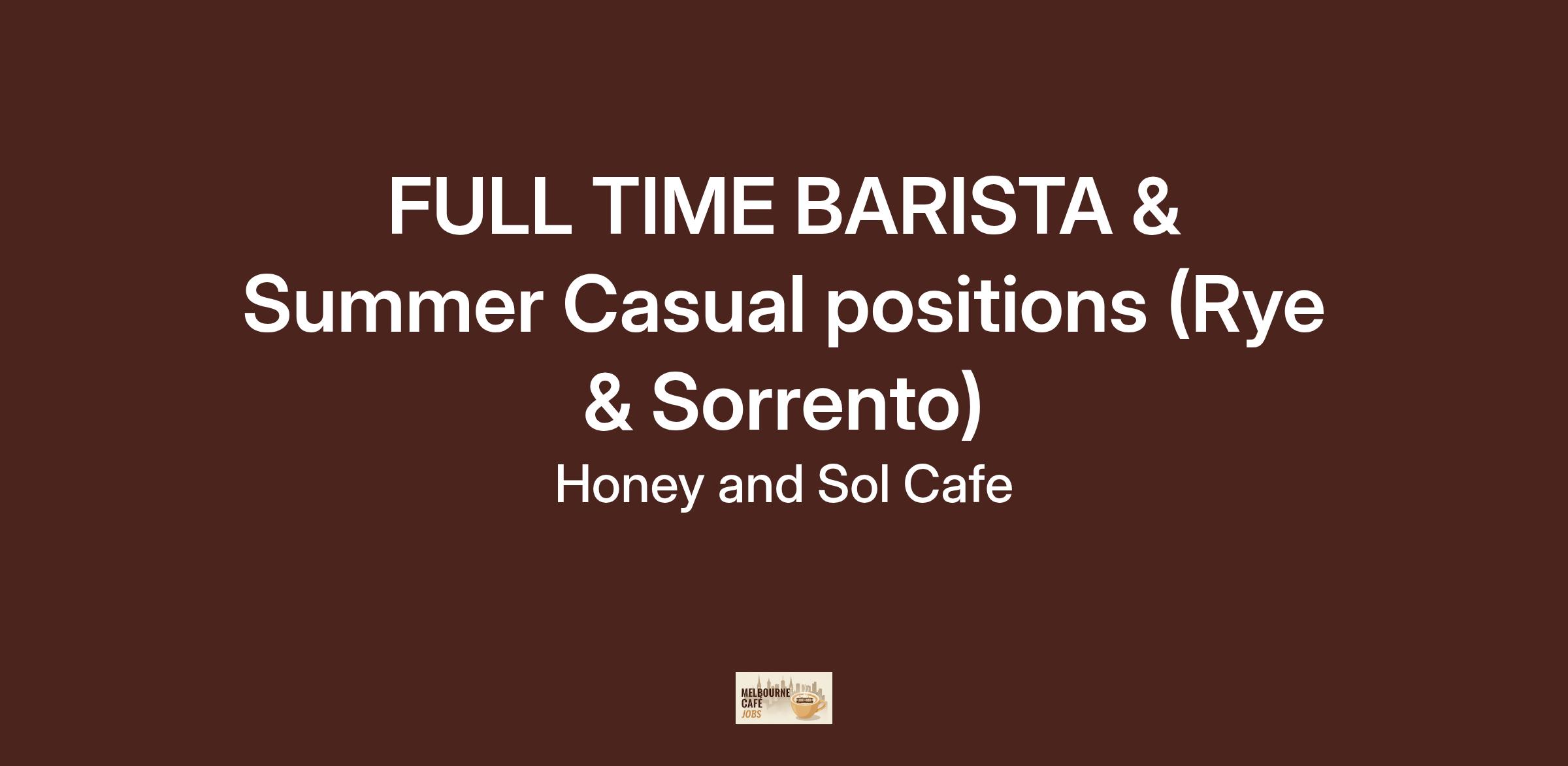 FULL TIME BARISTA & Summer Casual positions (Rye & Sorrento)